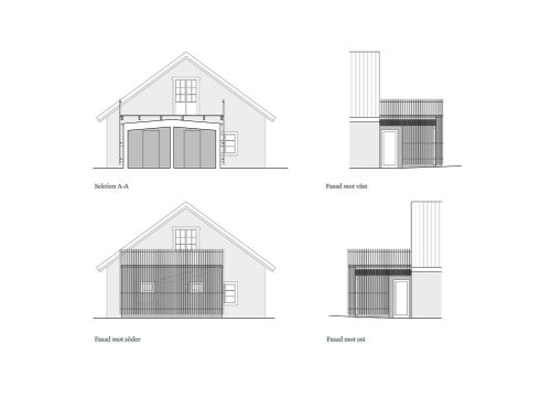 Resultatet blev en liten tillbyggnad på husets norra gavel. Huset ligger i det gamla kulturlandskapet på Berga gård i Frösunda och är ett riksintresse för kulturmiljövården. Utformningena av tillbyggnaden skedde därför i samråd med kommunens antikvarie. Tillskottet på 19 kvadratmeter rymmer två badrum utrustade med badkar och tvättmaskin, samt två små hallar. Ovanpå taket finns en terrass.