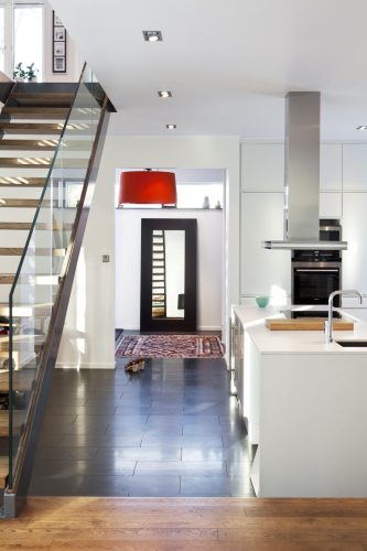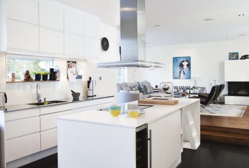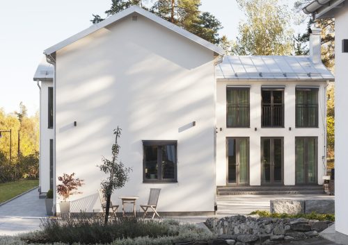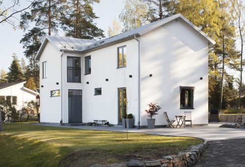 I Lännersta i Nacka ligger denna nybyggnad för en byggmästare och hans familj. Tomten ligger i ett område som varit fritidshusområde men som fått en ny detaljplan för permanentbebyggelse. Det är en hörntomt och huset har lagts nära tomthörnet i nordöst mot gatukorsningen. Huset öppnar sig in mot en stor sammanhängande yta i sydväst, men vänder en mer sluten sida mot omgivande gator. Planen består av två längor i två plan i vinkel mot varandra. På markplanet finns gemensamma ytor som vänder sig mot en stensatt uteplats i sydväst, i vinkeln mellan längorna. På övre planet finns den privata delen med sovrum, föräldrasovrummet i svit med badrum och klädkammare. Huset är byggt av lättbetongelement och har vitputsad med sockel i skiffer och tak i falsad Rheinzink.
