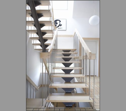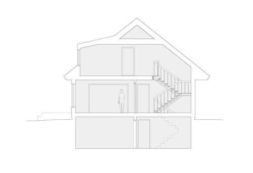 En ny trappa som förbinder alla tre planen leder upp till ateljén och en ny sovrumsdel. På entréplanet har kök, badrum och tvättstuga byggts om, och ett bibliotek inretts. I källaren finns nu ett arkiv.