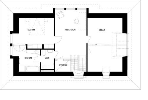Dan Jonsson är grafisk formgivare och tidigare professor i illustration på Konstfack. Åsa Marstrander är konstnär. Deras behov var ett nytt kök, samt ateljéer och sovrum med tillhörande badrum på övre våningen.