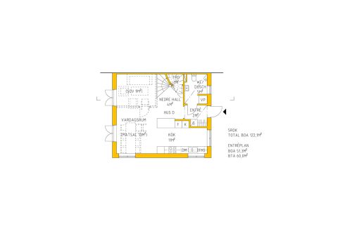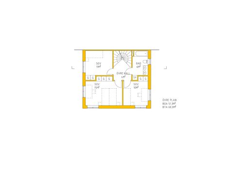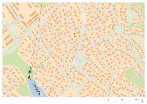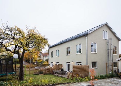 I Herrängen står två stycken parhus på vad som tidigare var en villatomt. Husen är i två våningar plus vind. Det nedre planet rymmer kök och vardagsrum och en tillgänlig wc/d. Det övre två sovrum och ett stort badrum. Vinden är inredd, och har både takfönster och ett stort gavelfönster.