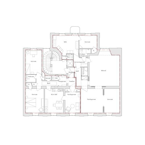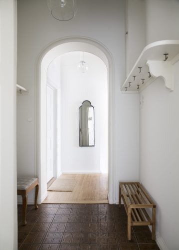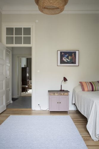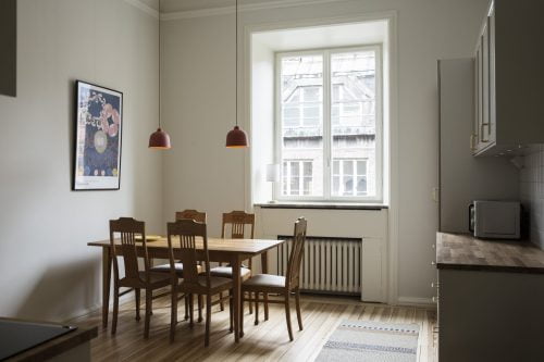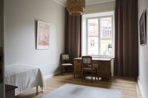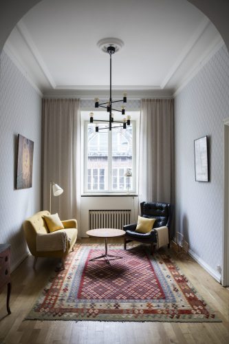 När byggentreprenaden slutförts gjorde vi också inredningen av den ena lägenheten, som skulle hyras ut möblerad, komplett med husgeråd, belysning, mattor, tavlor och gardiner. Istället för att slentrianmässigt köpa allt nytt hos närmsta möbelleverantör, erbjöd vi oss att i hög grad använda oss av återbruk. Alla möbler i projektet är, förutom sängarna, återbrukade kvalitetsmöbler. Resultatet blev ett trevligare och mer karaktärsfullt hem, som dessutom kostade mindre, både för beställare och inte minst för miljön.