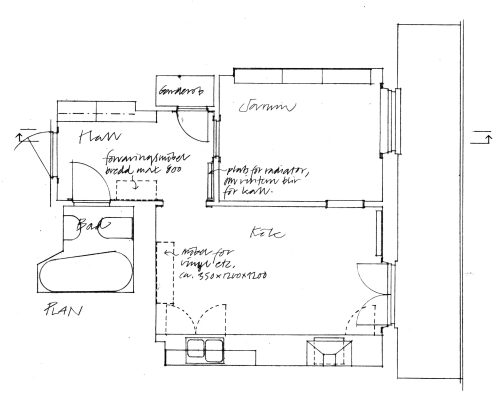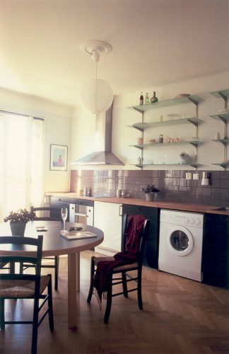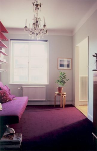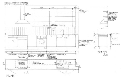 Vår beställares lägenhet var en typisk funkisetta med litet arbetskök, matplats och allrum. Vi ritade om planlösningen och placerade en ny köksuppställning i allrummet. På så sätt fick lägenheten ett mindre sovrum och en mer samtida social karaktär. En privat del kan stängas till och i det större allrummet kan man bjuda in till stora middagar.