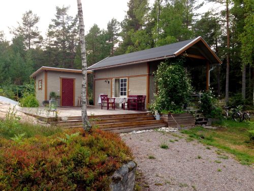 Resultatet blev ett enkelt litet hus med en rymlig känsla. Entrédörren nås från ett uterum där diskbänken står under tak och inbäddad i grönska. Innanför entrédörren finns ett litet kök till höger och avhängning till vänster. Längre in finns plats för ett matbord bredvid en liten kamin. Här är det öppet nästan fyra meter upp till nock. I de inre delarna finns plats för en eller två sängar under ett sovloft. Under lofter är det ståhöjd. Sovloftet når man med en stege. Hjärtat i projektet är en stor terrass utanför pardörrarna på husets långsida. Terrassen är inramad av huvudbyggnaden, en förrådsbyggnad och en klipphäll.